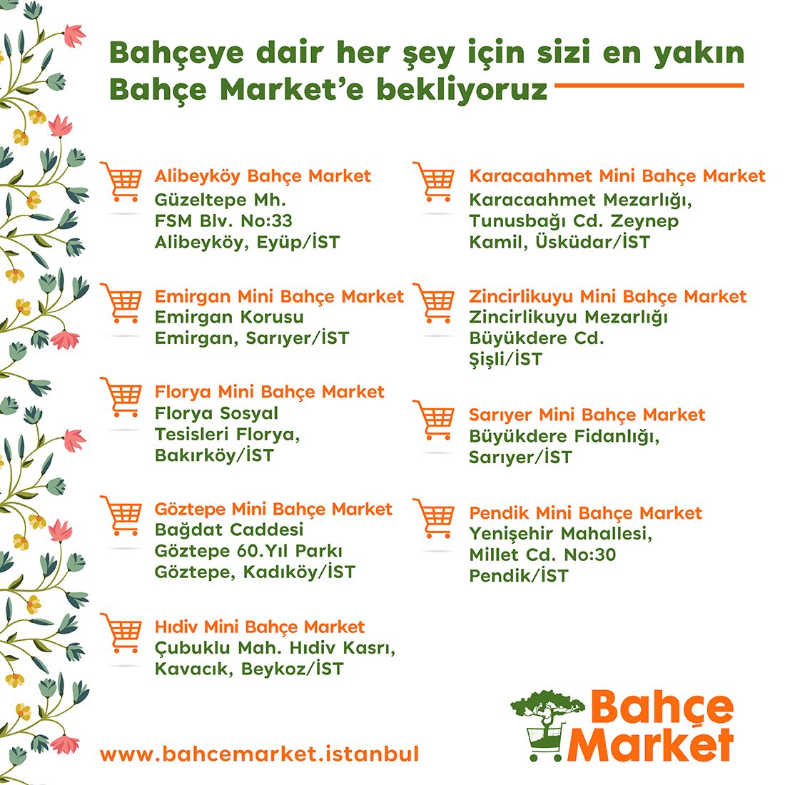 Bahçe market florya. Florya zincirlikuyu sarıyer göztepe hıdiv korusu emirgan korusu karacaahmet pendik bölgelerinde ziyaret edebilirsiniz. 47 9k followers 57 following 3 004 posts see instagram photos and videos from bahçe market bahcemarket. Bahçeye dair her şeyi rahatlıkla bulabileceğiniz bahçe market lerde yüzlerce çeşit bitki ve rengarenk çiçekler yer alıyor. Feel the essence of the tropical forests at our place we are the option for your special event such birthdays engagement and weddings.